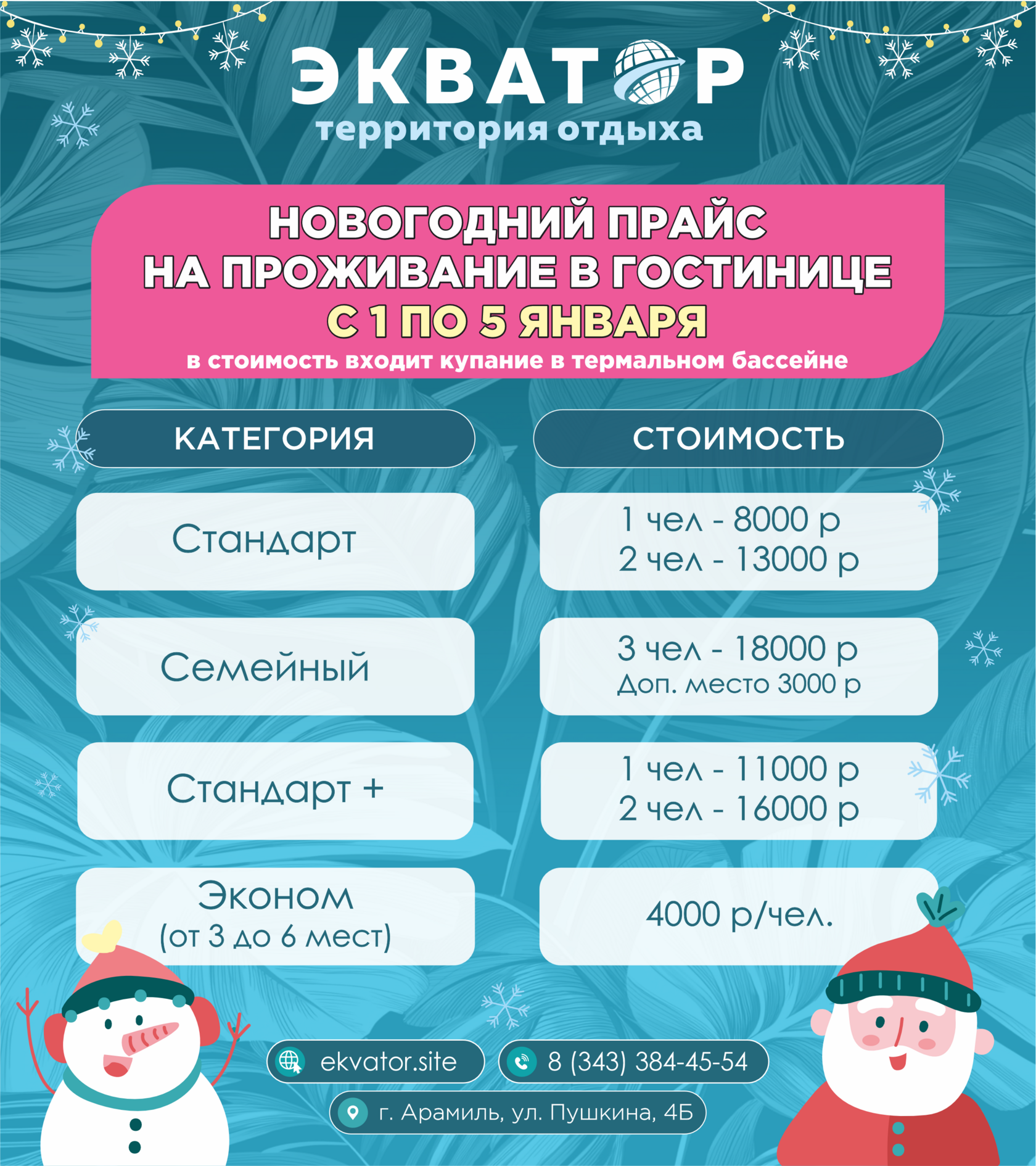 Планируете провести первые дни нового года в тёплой, уютной атмосфере? Тогда «Экватор» - идеальное место!